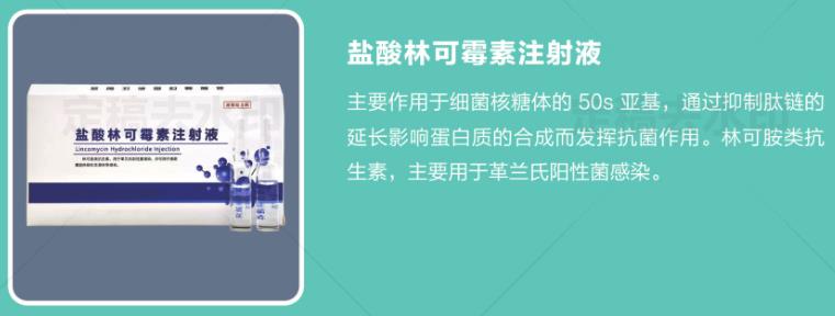 主要作用于細菌核糖體的 50s亞基,通過抑制肽鏈的鹽酸林可霉素注射液 延長影響蛋白質的合成而發揮抗菌作用。林可胺類抗生素,主要用于革蘭氏陽性菌感染。