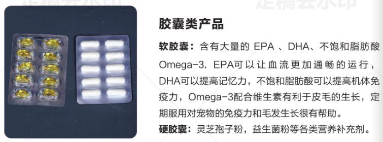 Omega-3,EPA可以讓血流更加通暢的運行, DHA可以提高記憶力,不飽和脂肪酸可以提高機體免疫力,Omega-3配合維生素有利于皮毛的生長,定期服用對寵物的免疫力和毛發生長很有幫助。