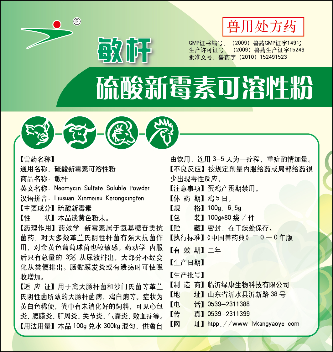獸藥名稱:敏桿硫酸新霉素可溶性粉